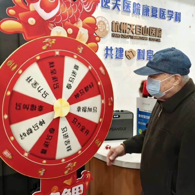 活动尚未正式开始,便吸引了大批患者驻足围观。不少患者在医护人员及家属的陪同下,徜徉于彩灯之下,或凝神思索,或互相探讨。大家积极参与,开动脑筋,每当解出一道谜语,便迫不及待地交予现场工作人员核对答案。活动规则规定,集齐五张谜底,即可获得一次转盘抽奖的机会。这一设计极大地激发了大家的参与热情,现场人头攒动,欢声笑语不断,气氛热烈。